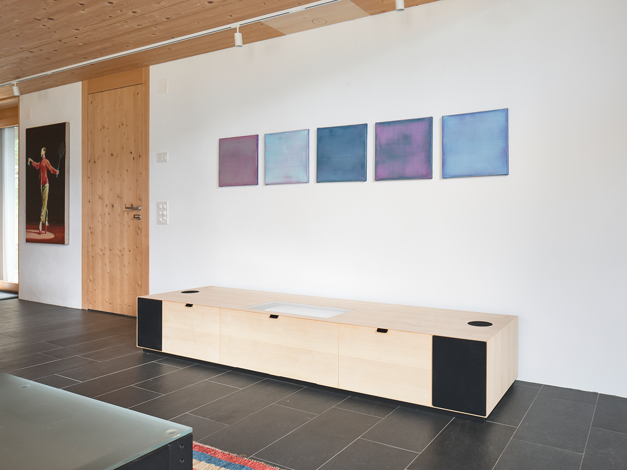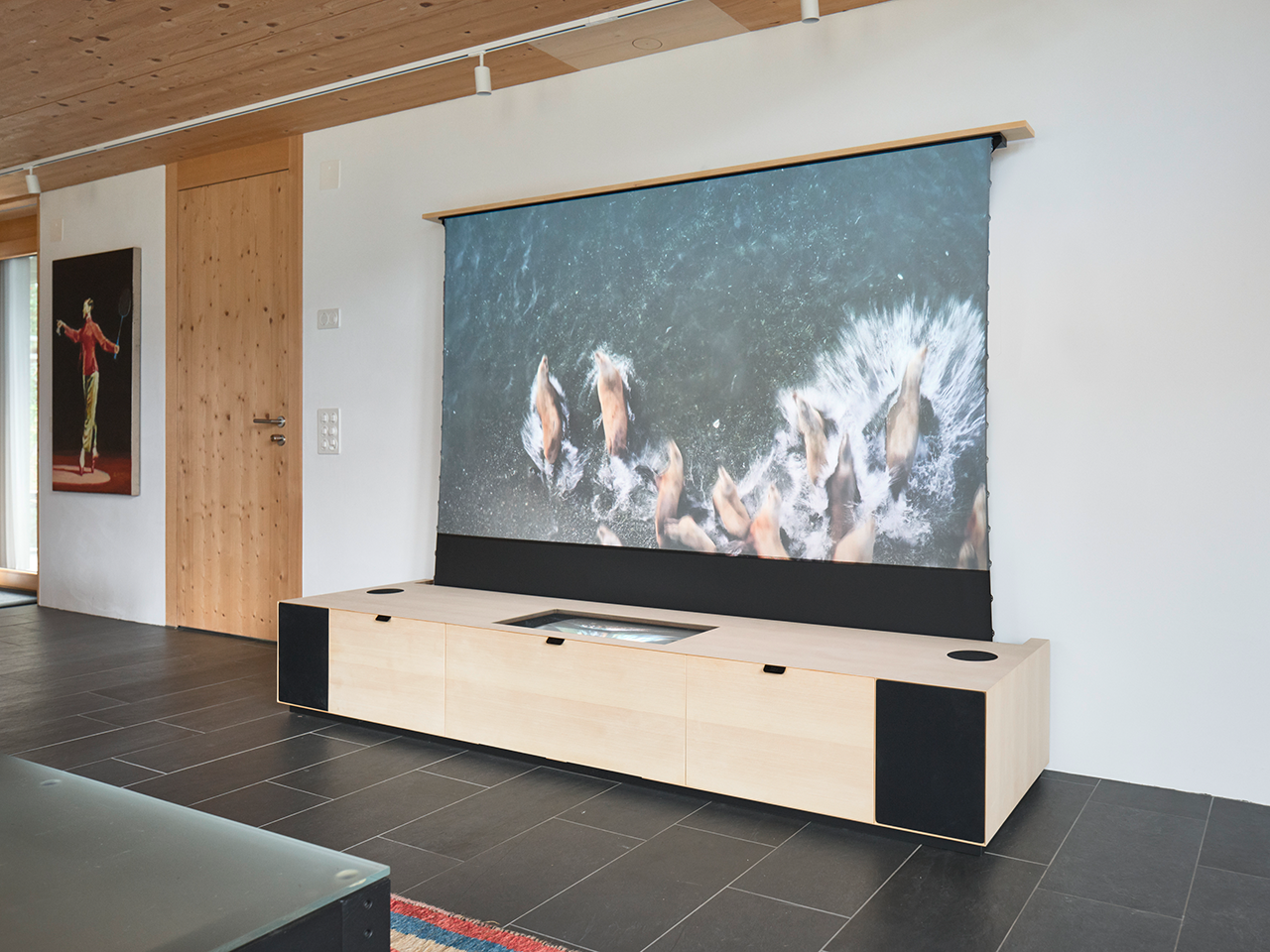 Planung und Installation eines AV-Möbel mit automatisierter Leinwand.
